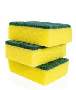 Esponja con cubierta de fibra abrasiva, ideal para la limpieza diaria de la loza.